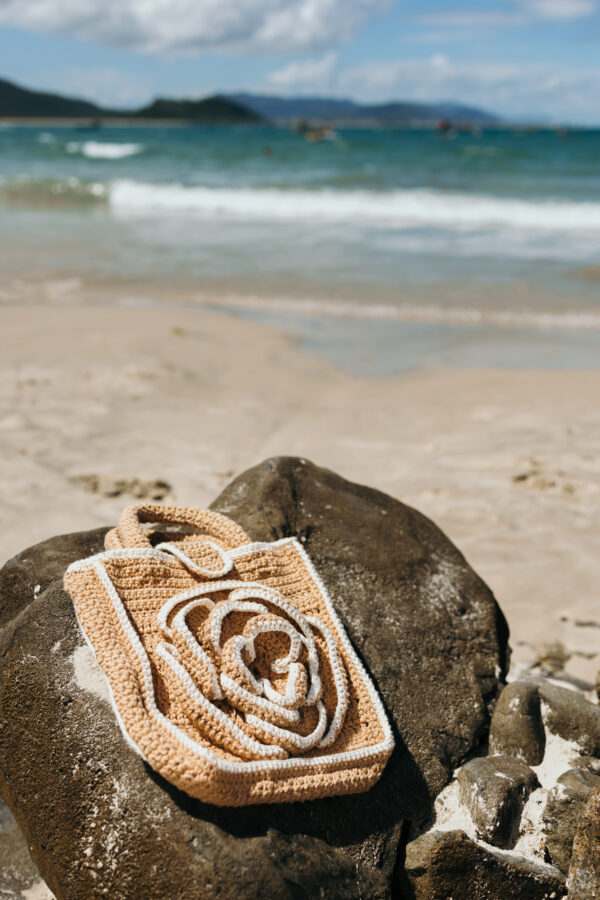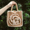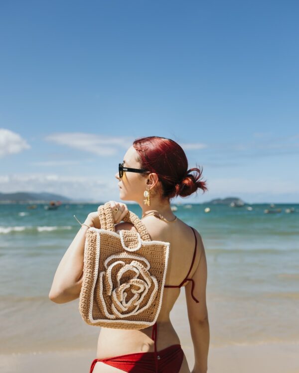 a Bolsa Flor é uma peça artesanal única, confeccionada à mão em crochê com linha 100% algodão