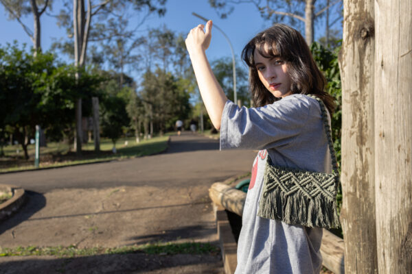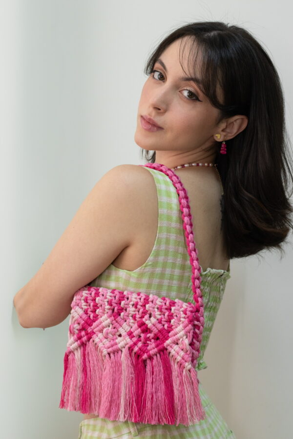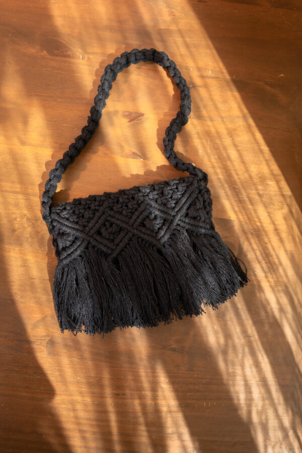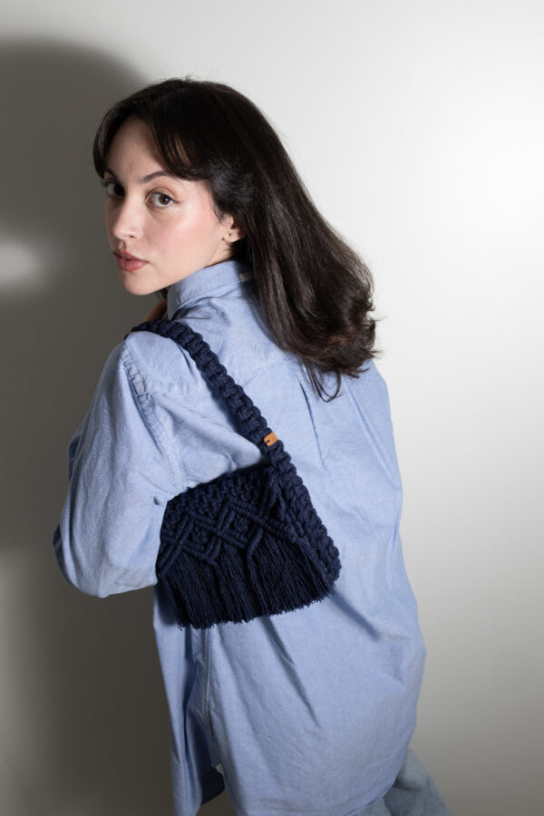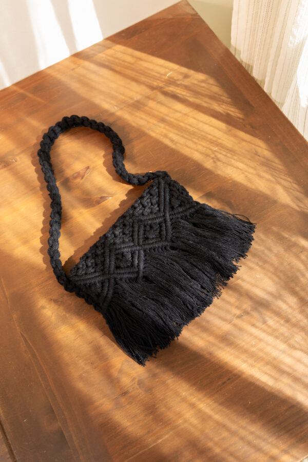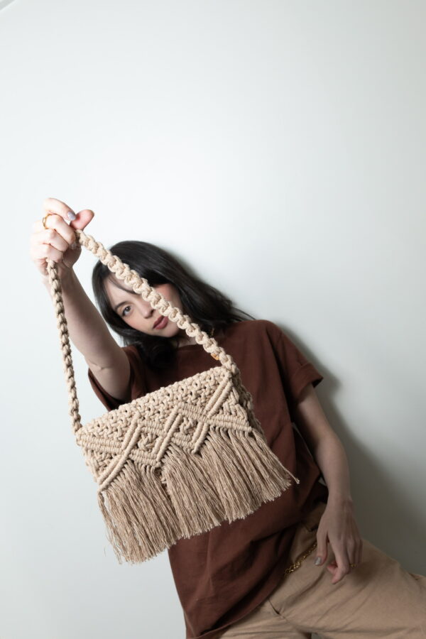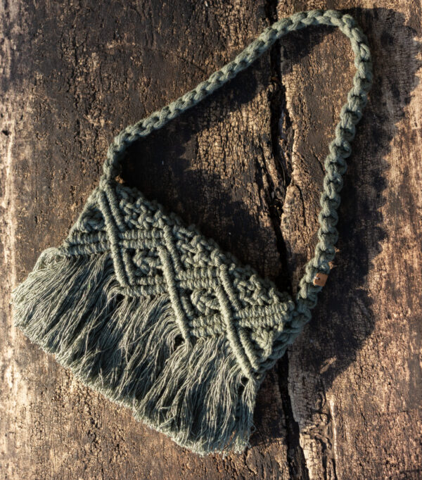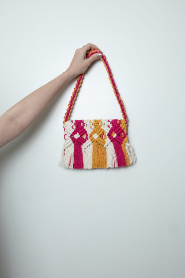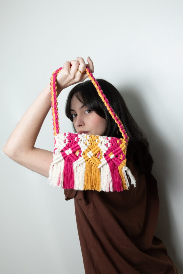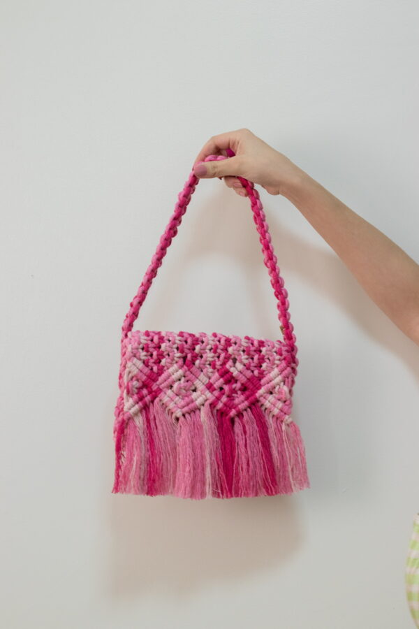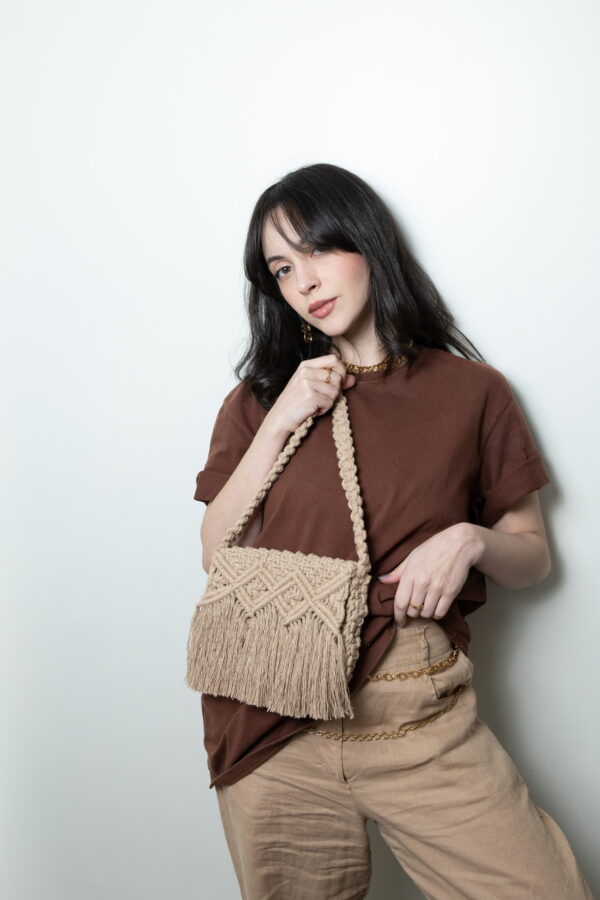 não recomendamos lavar bolsas de macramê, mas, em caso de necessidade, limpe com um pano úmido e sabão neutro.