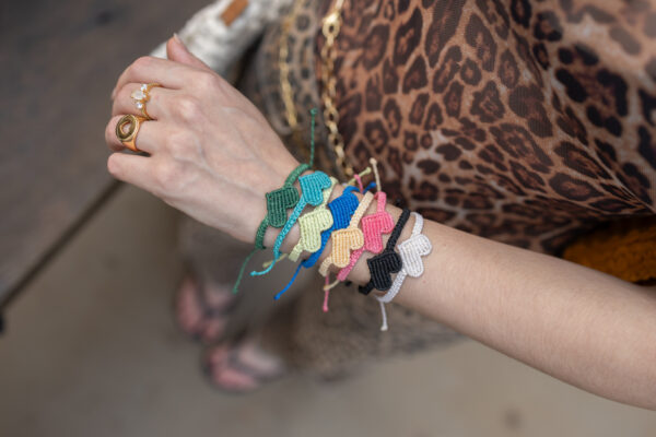 a pulseira é feita com a técnica de macramê, usamos fio encerado e ajuste regulável.